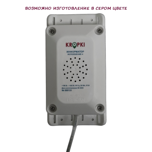 Информатор устанавливается внутри и снаружи помещений, работает с Android 5.0 и iOS 10.2+ через Bluetooth (BR/EDR и BLE), и взаимодействует со смартфонами через бесплатное приложение KROPKI из Play Market и App Store.