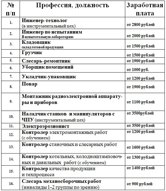 На постоянную работу нам требуются следующие специальности (обновление март 2026 г.)